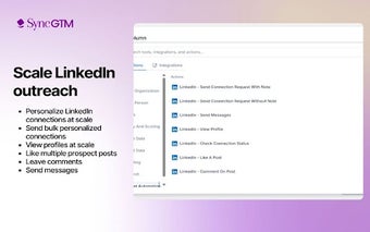 SyncGTM to darmowe rozszerzenie do przeglądarki Chrome, które ułatwia użytkownikom działania związane z nawiązywaniem kontaktów zawodowych na LinkedIn. Aplikacja pozwala na sprawdzanie statusu połączeń, przeglądanie profili, wysyłanie zaproszeń do kontaktów oraz wiadomości. Dodatkowo użytkownicy mogą polubić posty i komentować je, co pozwala na efektywne angażowanie się w sieci kontaktów.